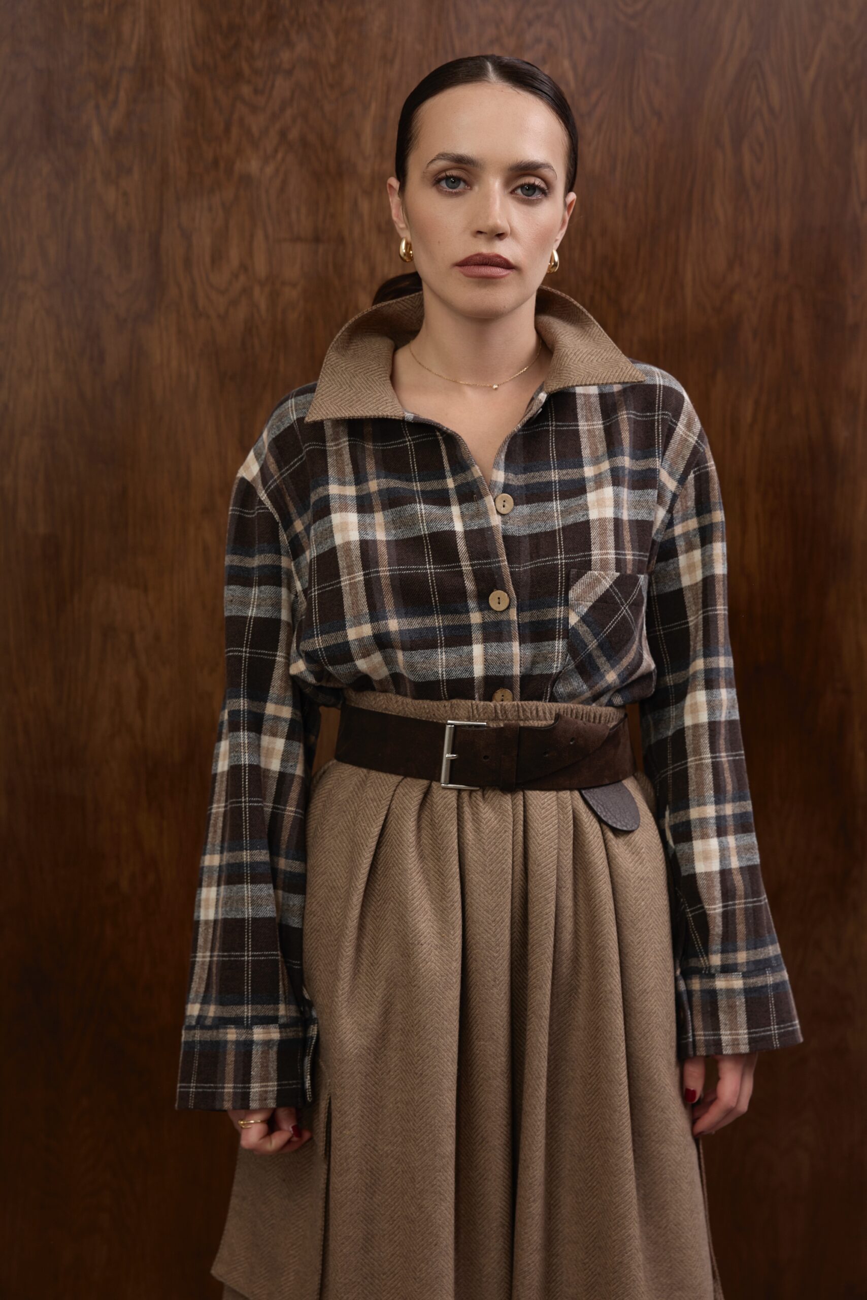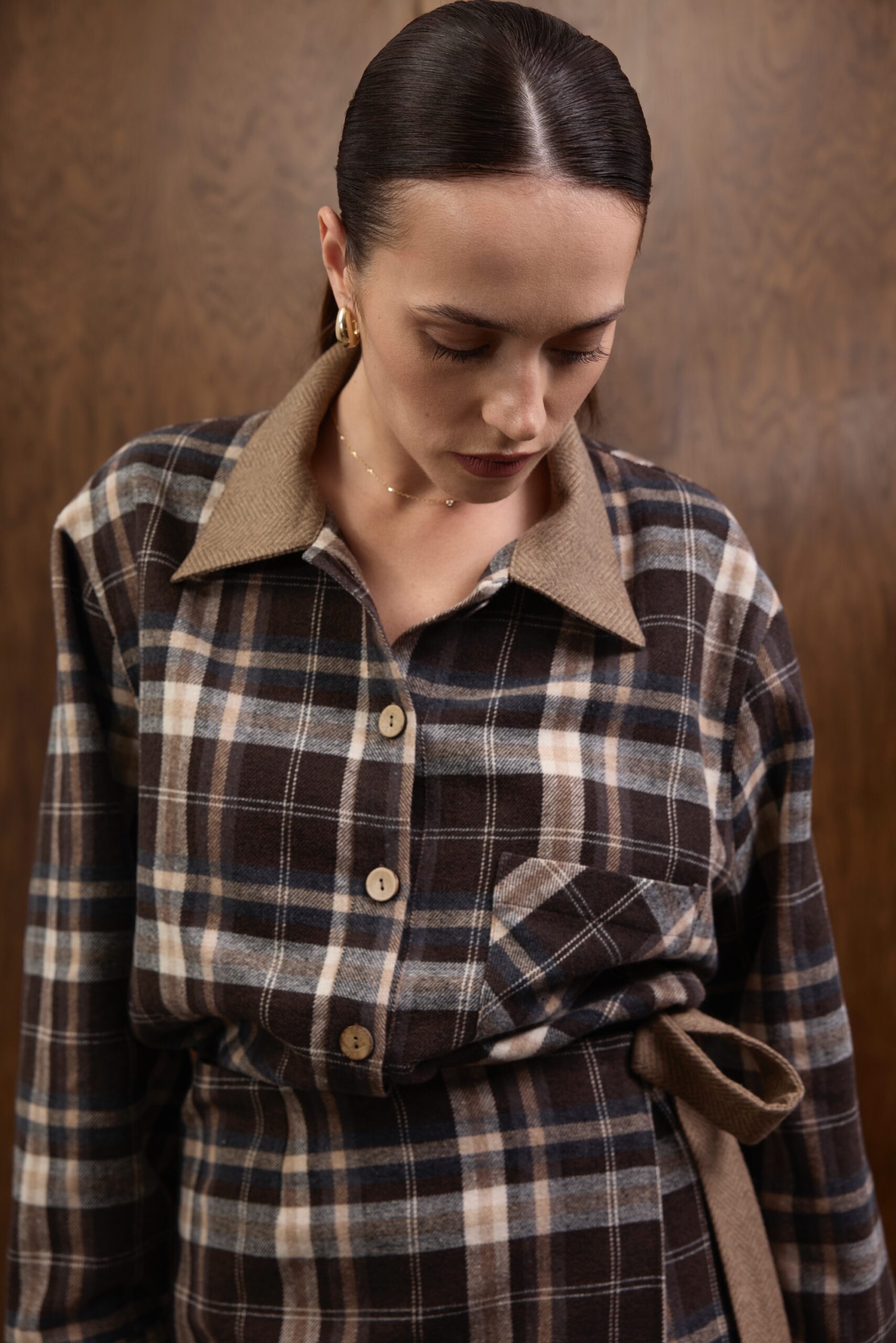 Miękka, otulająca flanelowa koszula w klasyczną kratę to odpowiedź na jeden z najmocniejszych trendów sezonu — powrót do quiet luxury w wersji inspirowanej stylem countryside i estetyką przejściowych miesięcy.