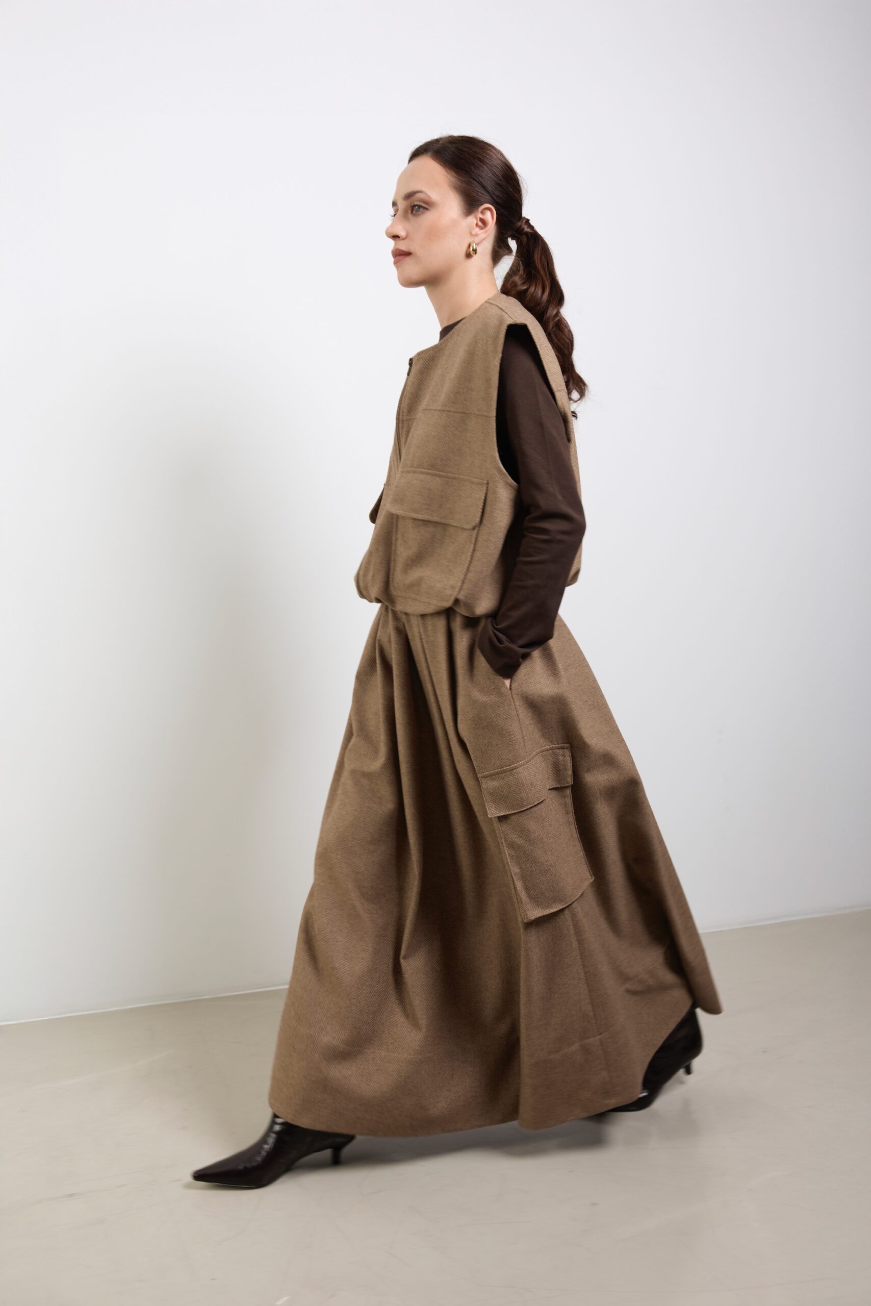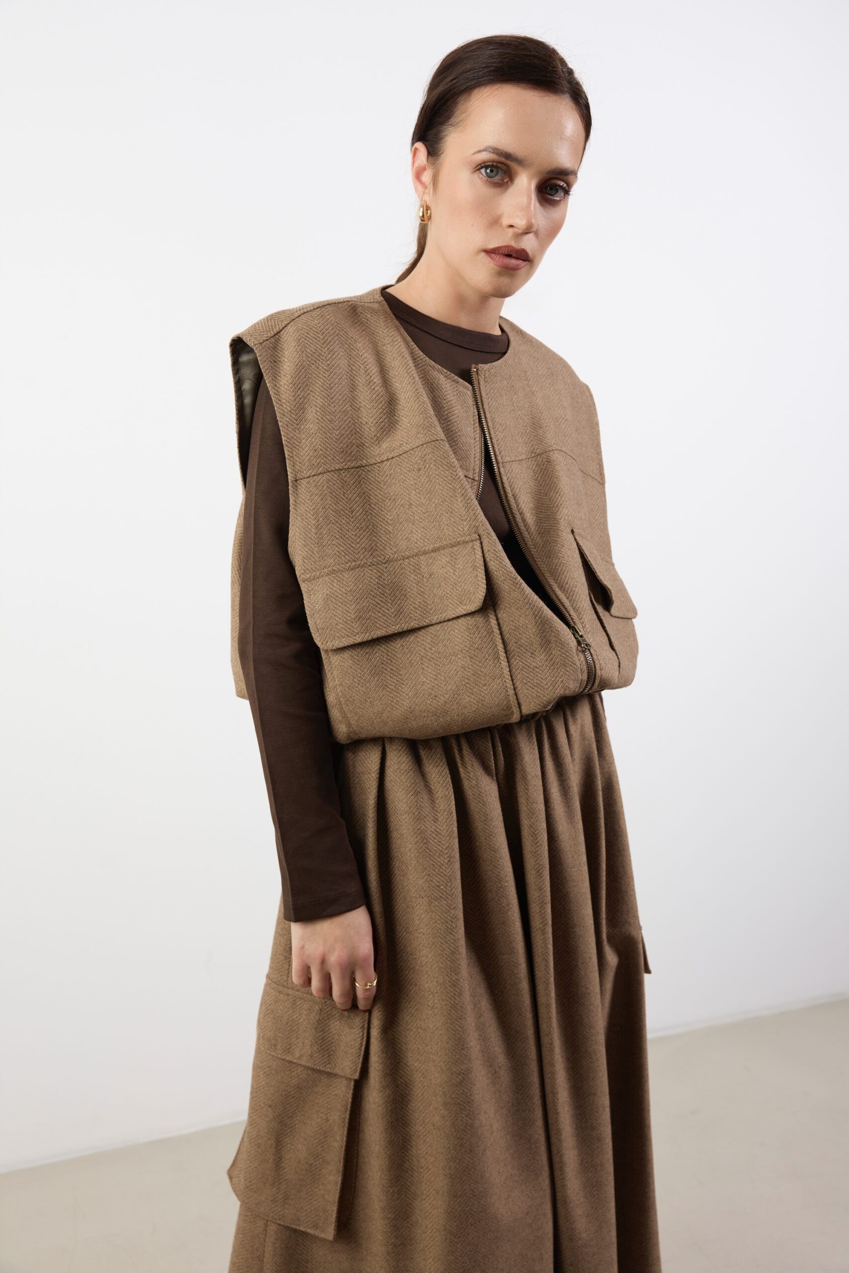 Kamizelka idealnie wpisuje się w estetykę współczesnej klasyki — subtelnie inspirowanej tradycją, ale zaprojektowanej z myślą o codziennym, nowoczesnym użytkowaniu.